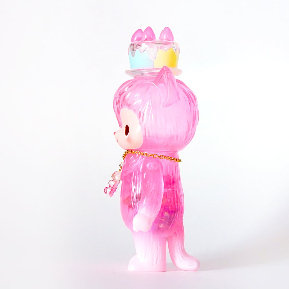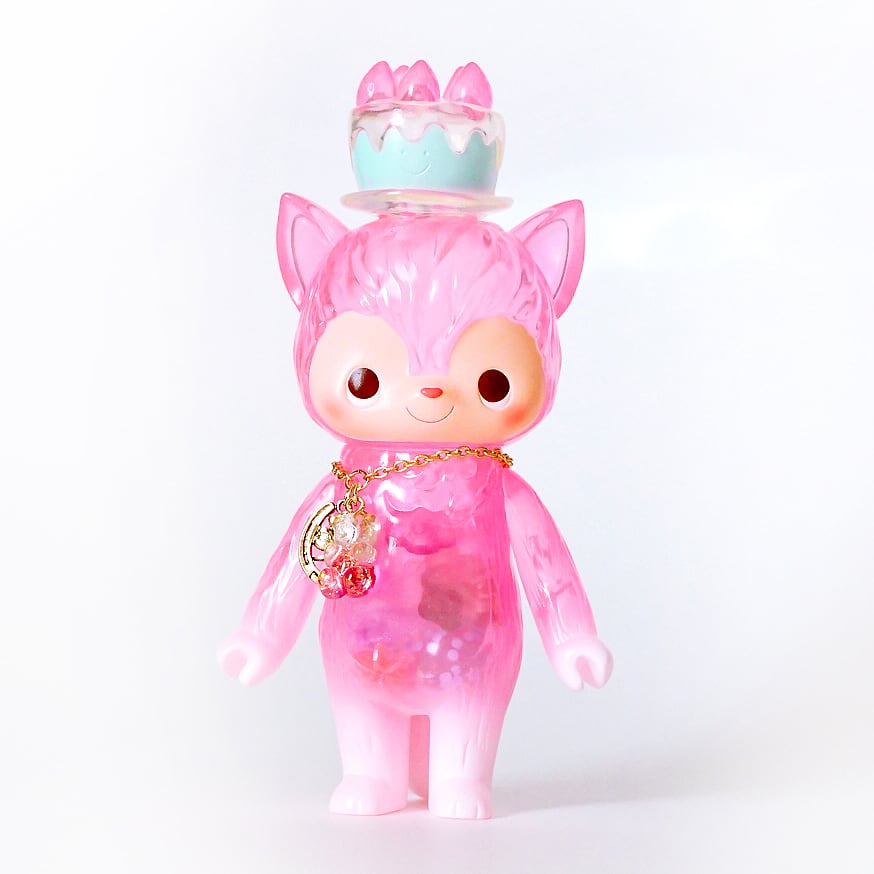 アーティスト自身がネックレスや中のミニオーナメントを入れたりしているセミカスタマイズ作品。ネックレスには幸運のモチーフ、グミベアのチャームがついています。