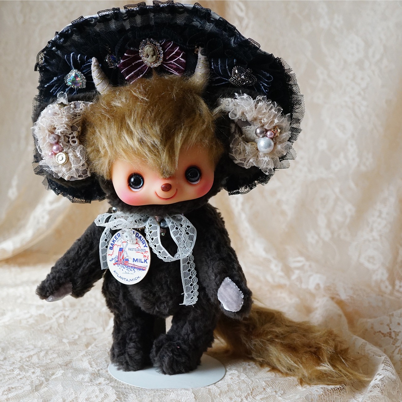 1点もの Monster Lulu ボンネット付ブラック モンスターのアートドール